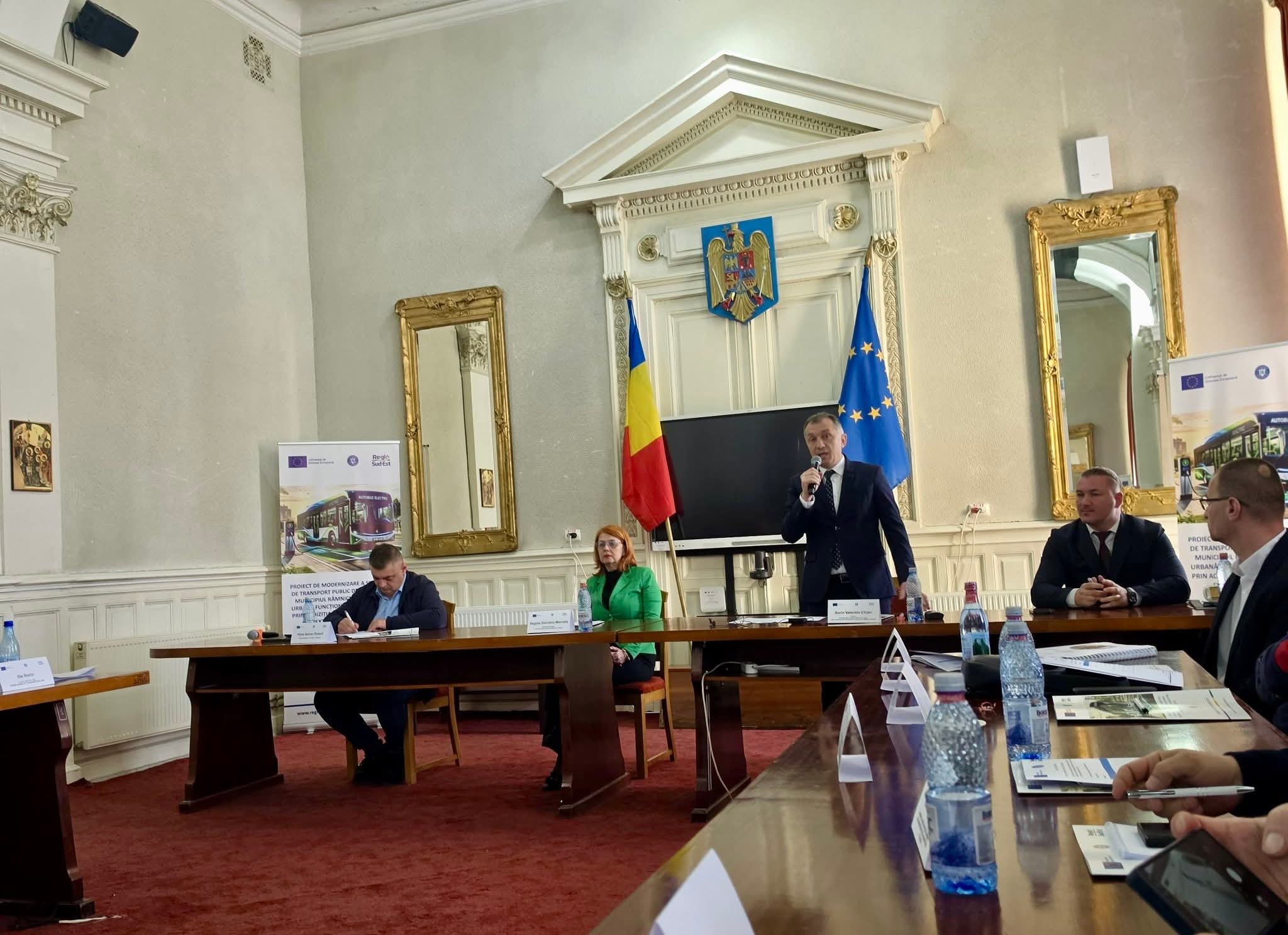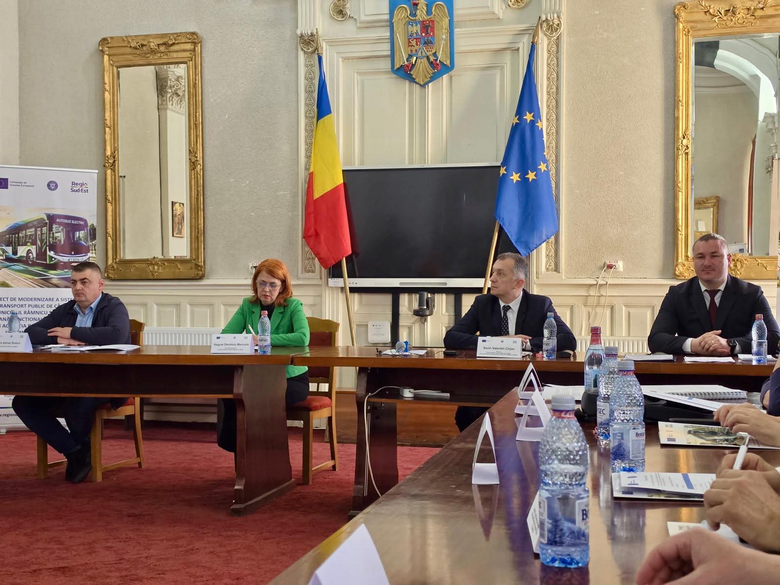 Luni, 06 aprilie a.c., începând cu ora 11:00, în sala de ședinte a Consiliului Local al Municipiului Râmnicu Sărat a avut loc o conferință de presă organizată cu prilejul lansării proiectului: „Proiect de modernizare a sistemului de transport public de călători din Municipiul Râmnicu Sărat și zona urbană funcțională Râmnicu Sărat prin achiziția de autobuze electrice și extinderea sistemului de e-ticketing”.
